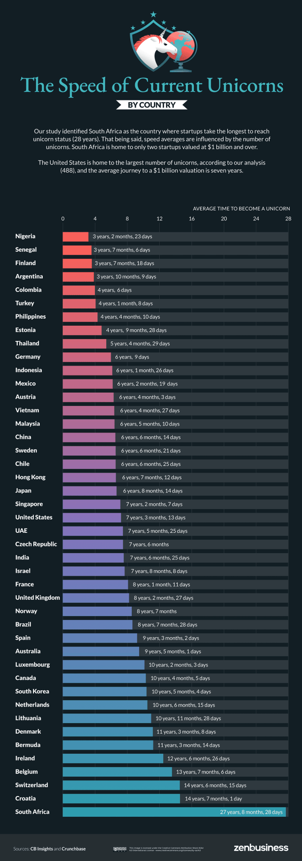 Anyone with ambitions to create their own unicorn should think about heading to Germany. Europe’s hotbed for innovation is the country with the fastest speeds from foundation to billion-dollar status. On average, it took German unicorns six years and nine months to prove just how special (and valuable) they really were.